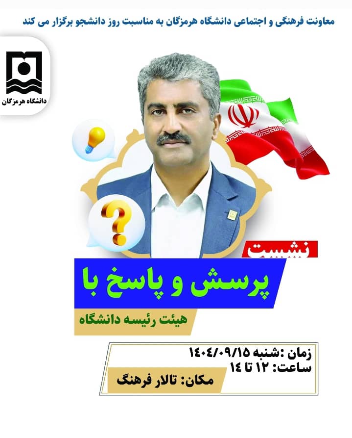 معاونت فرهنگی و اجتماعی دانشگاه هرمزگان برگزار می‌نماید: