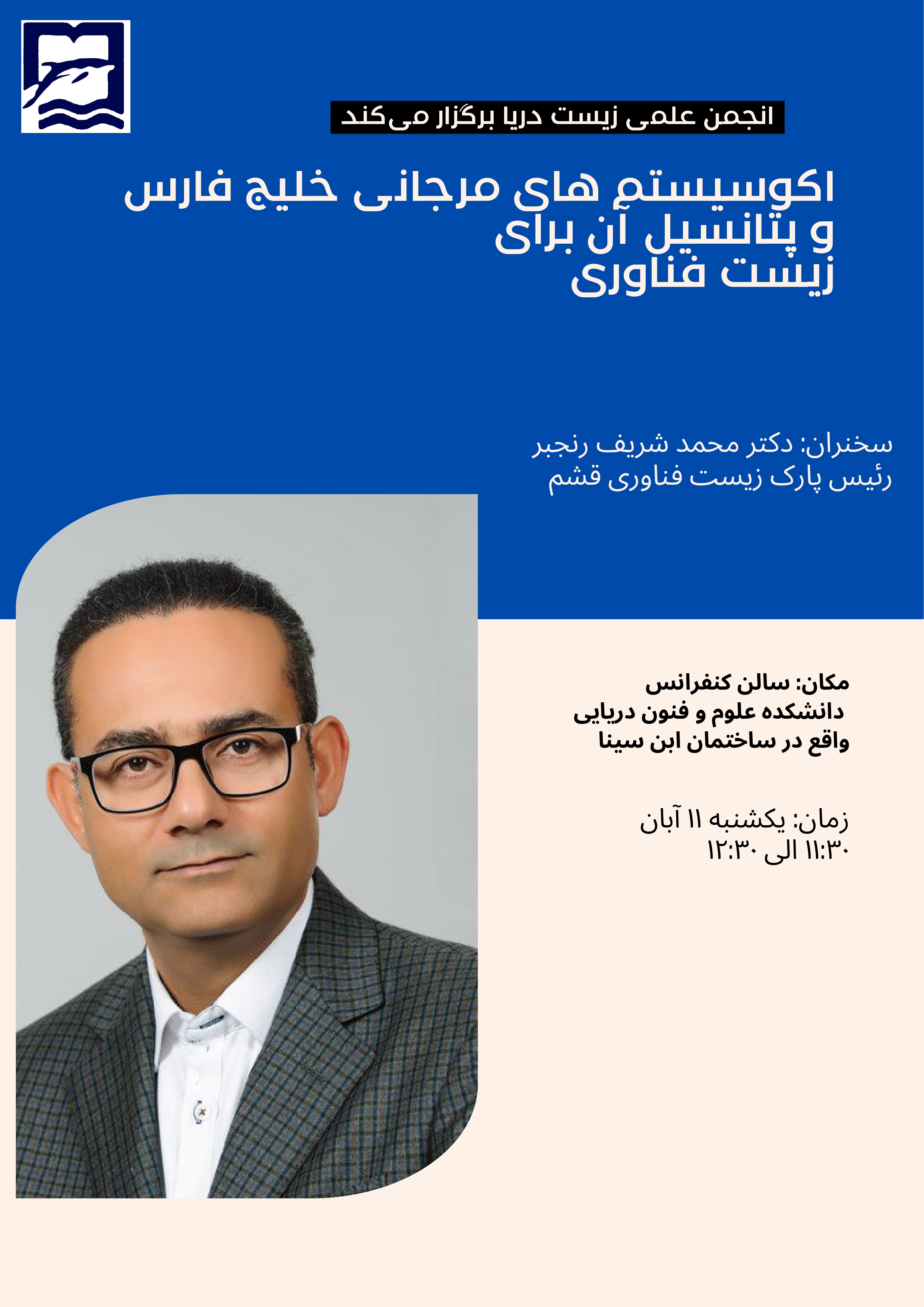 انجمن علمی زیست‌دریا دانشگاه هرمزگان در راستای ارتقای دانش تخصصی و ایجاد فضای گفت‌وگوی علمی میان پژوهشگران و دانشجویان، نشست علمی با عنوان «اکوسیستم‌های مرجانی خلیج فارس و پتانسیل آن برای زیست‌فناوری» برگزار می‌کند. این نشست با حضور جناب آقای دکتر محمد شریف رنجبر، رئیس پارک زیست‌فناوری قشم و از متخصصان برجسته حوزه زیست‌فناوری دریایی، در روز یکشنبه ۱۱ آبان ۱۴۰۴ در سالن کنفرانس دانشکده علوم و فنون دریایی واقع در ساختمان ابن‌سینا از ساعت ۱۱:۳۰ تا ۱۲:۳۰ برگزار خواهد شد.