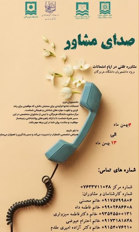 مشاوره تلفنی در ایام امتحانات ویژه دانشجویان دانشگاه هرمزگان