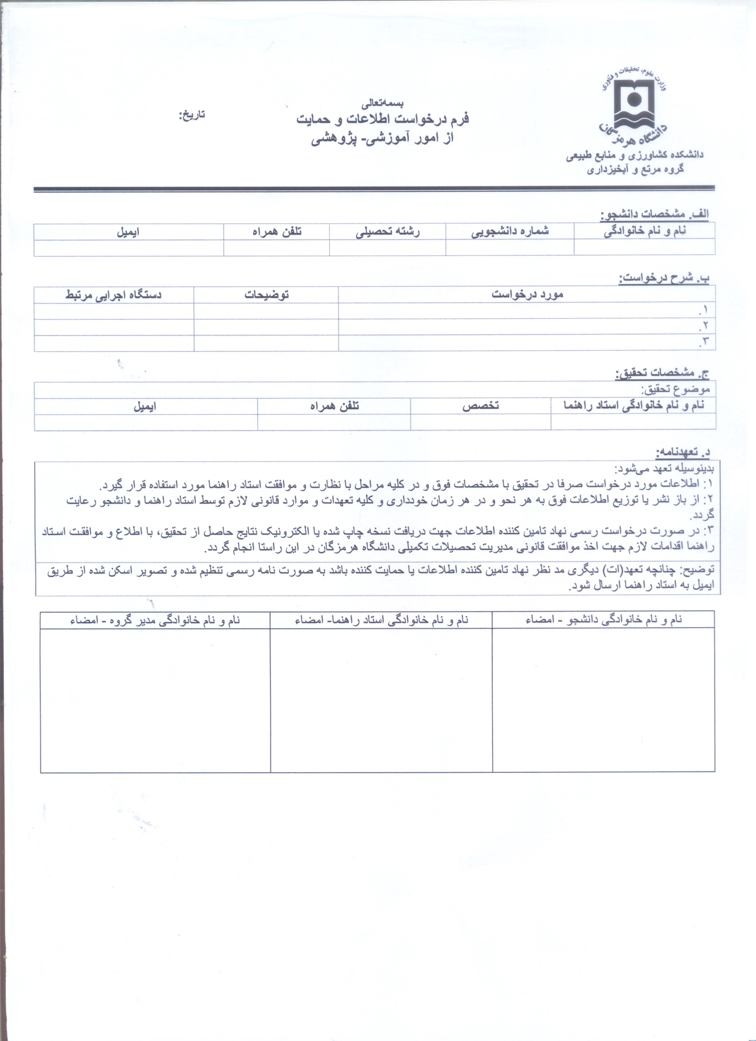 فرم درخواست داده از ادارات خارج ازدانشگاه(2183)